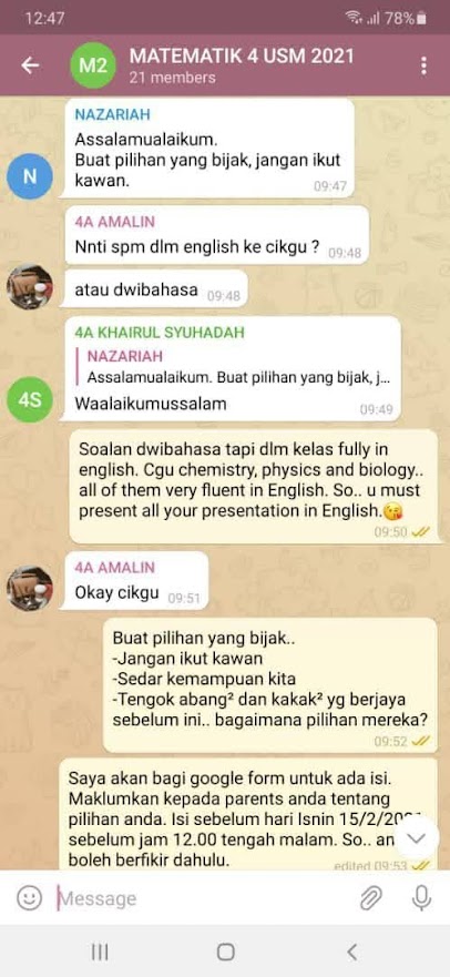 13 Februari 2021 - Medium Telegram Matematik 4 USM SMK Bandar Baru Serting
