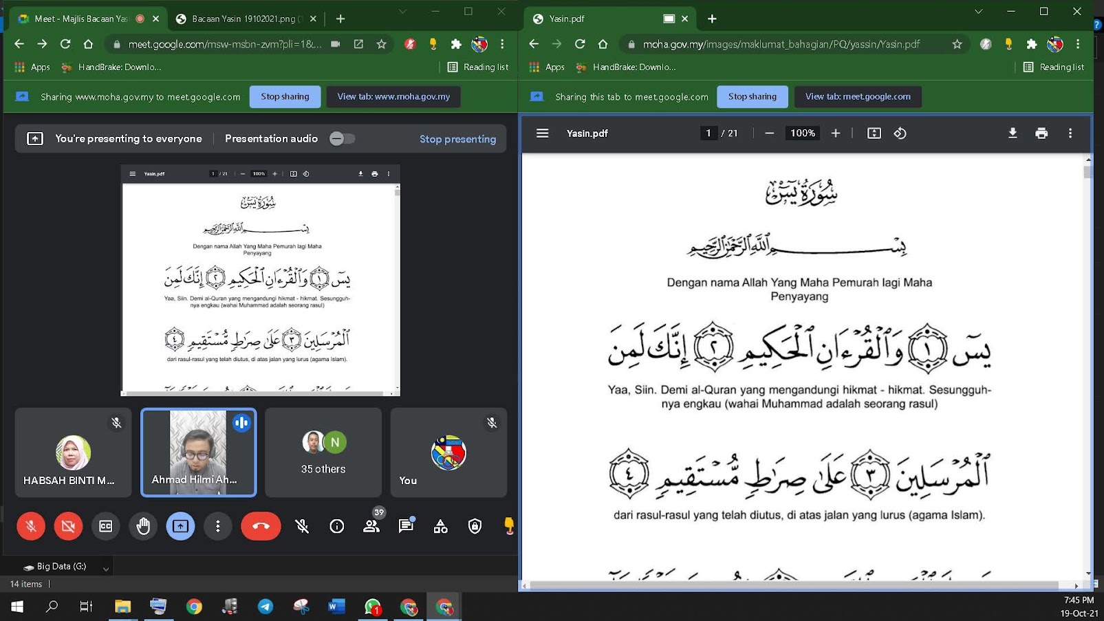 19 Oktober 2021 - Secara atas talian dari kediaman masing-masing