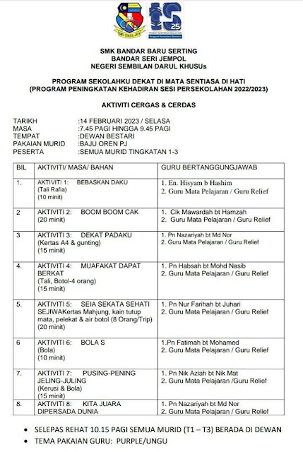 Penafian: Kerajaan Malaysia dan SMK bandar Baru Serting adalah tidak bertanggungjawab bagi apa-apa kehilangan atau kerugian yang disebabkan oleh penggunaan mana-mana maklumat yang diperolehi dari portal ini.